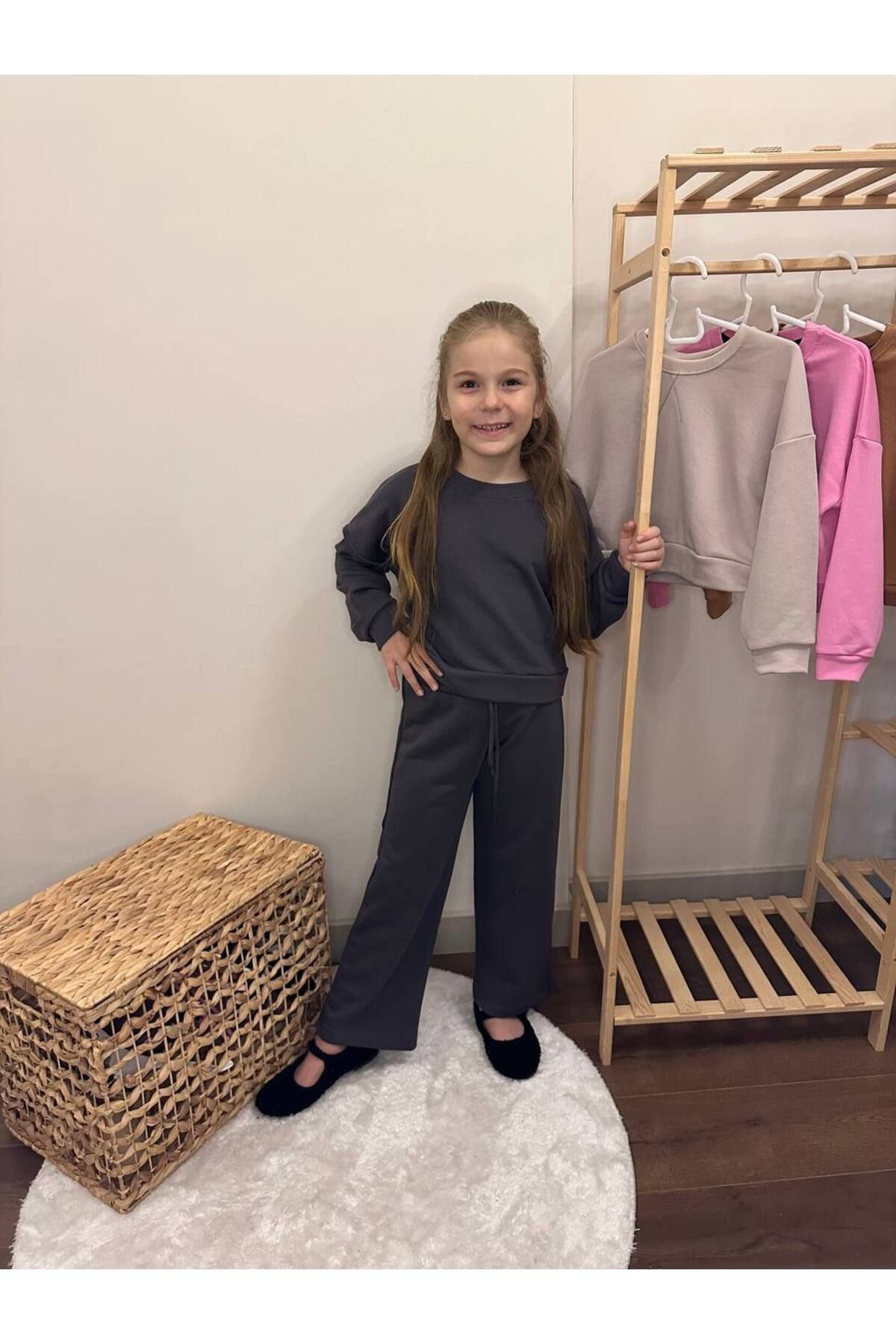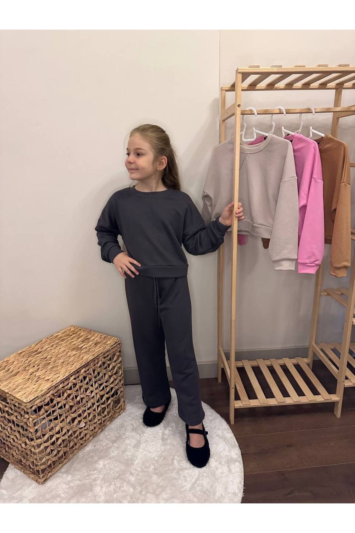 Yeni Sezon Kız Çocuk Fiyonk Detaylı 3 İplik Pamuk Kumaş Sweatshirt ve Tayt Alt Üst Takım